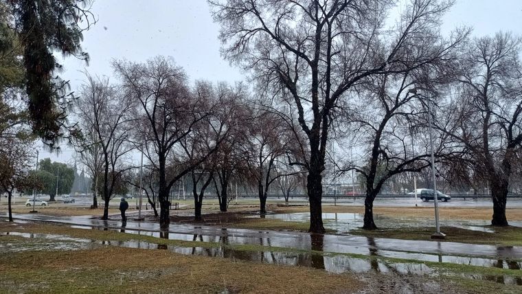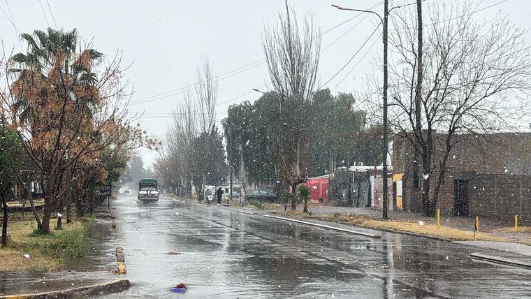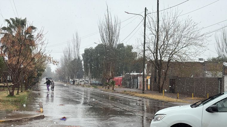 El fenómeno climático, que inició con lluvias, se transforma en aguanieve y nieve en distintas zonas del llano mendocino. La precipitación cubre el paisaje urbano, un evento que no se registra con frecuencia. El ingreso de una masa de aire polar genera estas condiciones atípicas para la región.