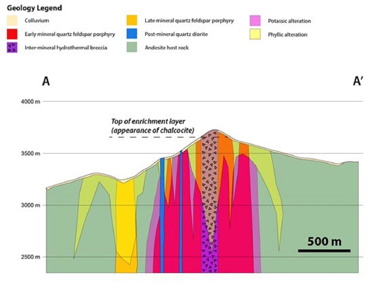 En El Perdido, indicó la empresa, "los geólogos han mapeado brechas hidrotermales no identificadas previamente que cubren un área de 1.700 metros por 250 metros, con una tendencia al norte-noroeste que atraviesa el centro del sistema de pórfido de cobre en El Perdido".