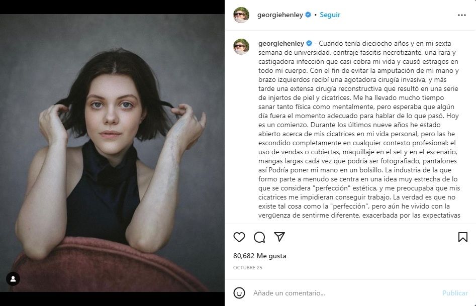 A Georgie le costó mucho salir de ese proceso tan duro, tuvo mucho temor de hablar porque el simple hecho de ver las consecuencias de tal afección resultaba ser muy crudo. “Me tomó mucho tiempo sanar tanto física como mentalmente, pero esperaba que algún día llegase el momento adecuado para hablar sobre lo que sucedió. Hoy es un comienzo”.
