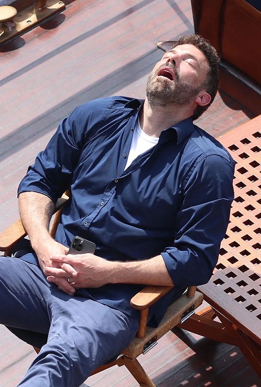 Ninguno de los dos dejó de mostrar en sus redes el inmenso amor que se tienen, sin embargo como parte del asedio de los paparazzis siempre hubo riesgos de captar momentos tan desopilantes como privados e íntimos de la pareja, y así fue como llegó a darse una foto viral de Aflleck durmiendo.