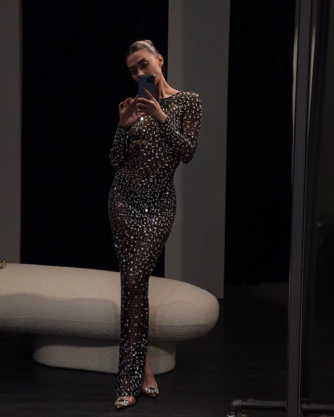 Esta vez, Salas conquistó a sus fanáticos en Instagram con un vestido al cuerpo con brillos plateados con el que posó desde Nueva York. La publicación obtuvo rápidamente miles de likes y cientos de comentarios de sus seguidores, enamorados de su look.