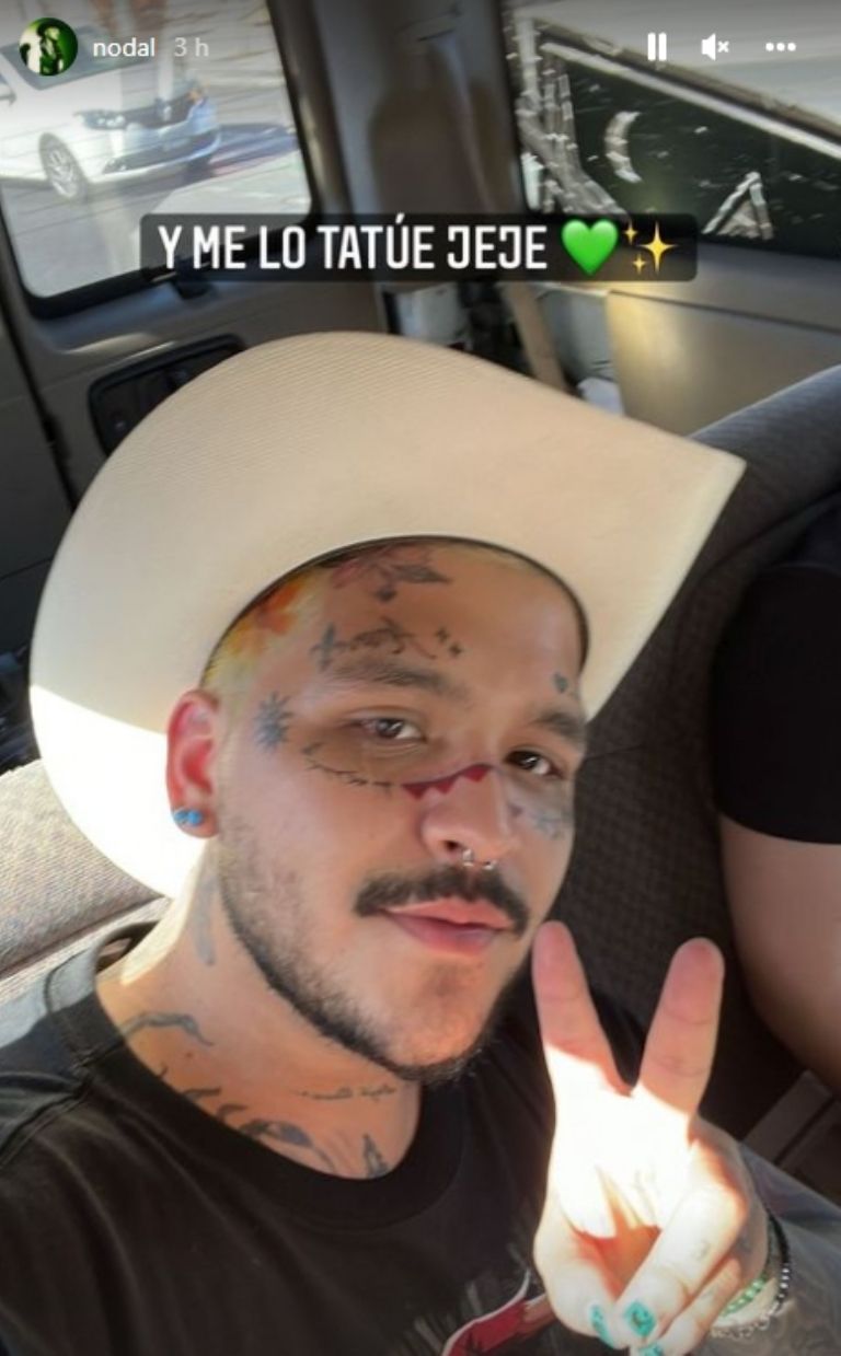 El cantante mexicano subió una fotografía en su perfil donde apareció junto a una mujer de nombre Mina Barnett, artista sonorense encargada de plasmar la pintura en su rostro. En ese momento se creyó que se trataba de una obra especial que habría solicitado Nodal, sin embargo, horas más tarde publicó una selfie donde no solo la mostró más de cerca, también desató rumores sobre un nuevo tatuaje.