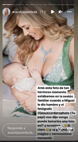 Sin embargo, hace algunas horas, en su cuenta oficial de Instagram. Aracely Arámbula realizó una publicación con un momento súper importante de su vida. En la foto que fue compartida en una de sus historias de la mencionada red se puede ver a la popular actriz dándole el pecho a su hijo Miguel. Además, en la imagen, se puede leer la siguiente frase: