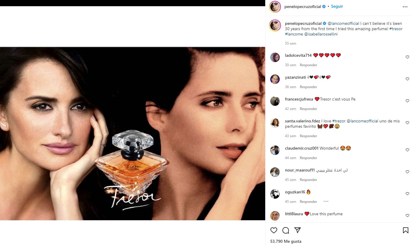 La propia Penélope Cruz ha asegurado que es su perfume favorito y hasta es un clásico: "Han pasado 30 años desde que probé este maravilloso perfume por primera vez".