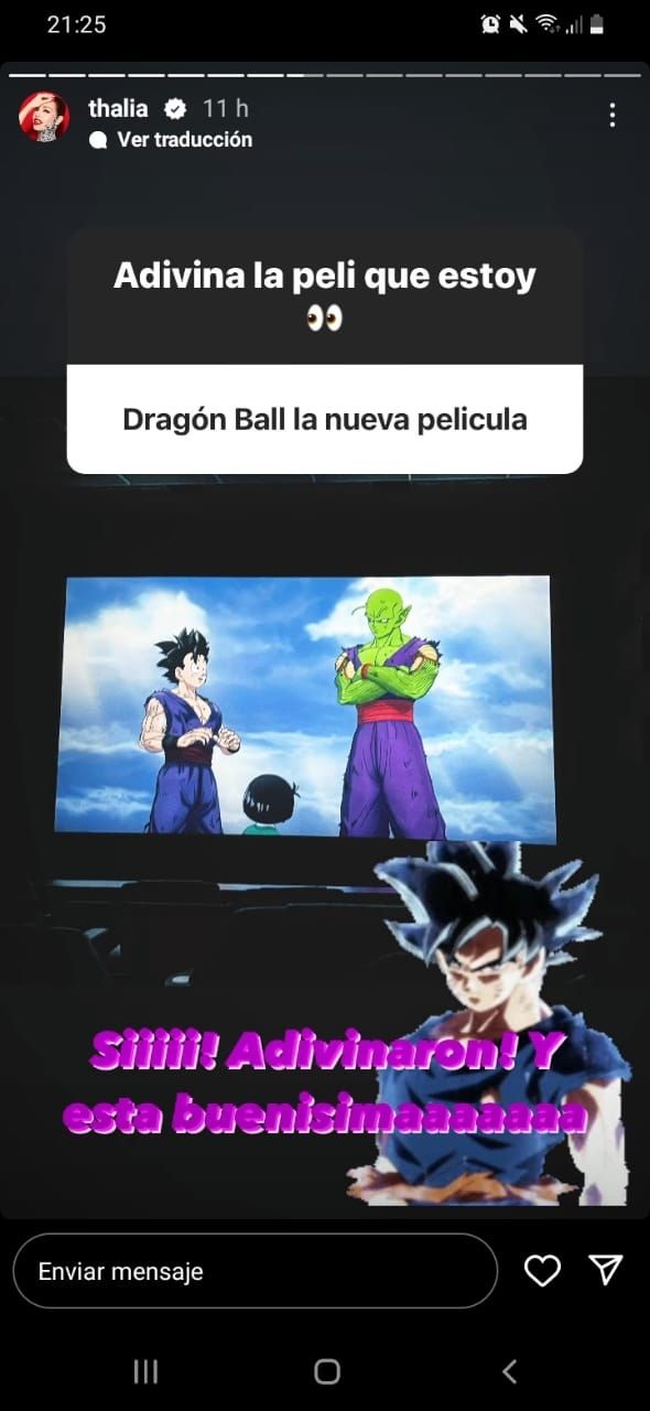 Hace algunas horas atrás, la brillante artista azteca, se llevó las miradas de todos sus seguidores al compartir una foto en sus estados de su cuenta oficial de Instagram. En la fotografía Thalía reveló que es fanática del animé. Pero particularmente de Dragon Ball, que es un dibujo animado que conquista a grandes y chicos desde hace décadas.