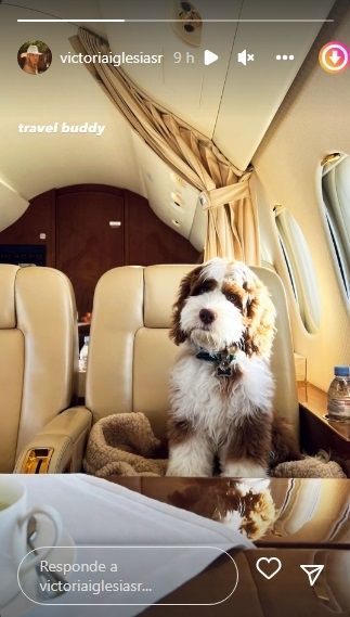 Victoria Iglesias nuevamente realizó una publicación es sus estados de la red social de la camarita. Ella publicó una foto de su perro mientras está de viaje en su avión privado. Junto a la fotografía se puede leer la frase "travel buddy" (compañero de viaje).