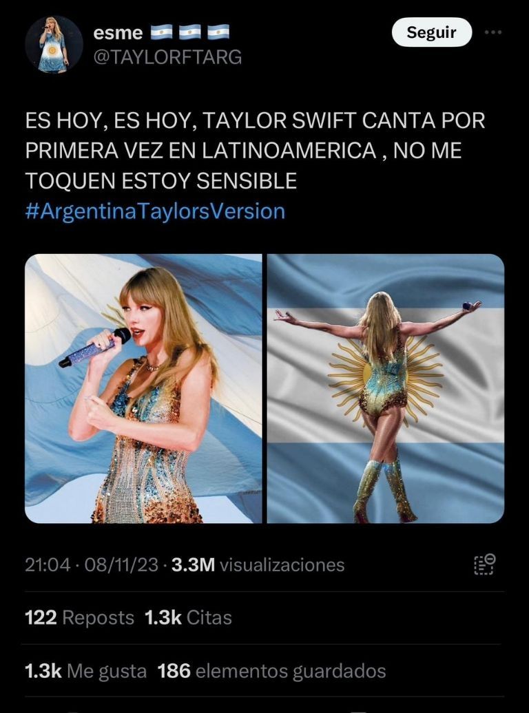 Las swifties mexicanas argumentan que el país azteca es uno de los lugares con mayor número de seguidores de Taylor Swift en América Latina, y que es descabellado que piensen que no forma parte del continente hispanohablante. El twit dice lo siguiente: "Es hoy, es hoy, Taylor Swift canta por primera vez en Latinoamérica, no me toquen, estoy sensible".
