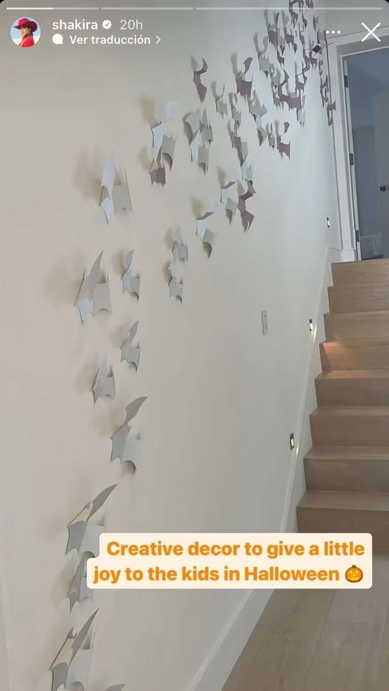 La barranquillera compartió en su Instagram una primera imagen con el mensaje: "Decoración creativa para dar un poco de alegría a los niños en Halloween". Allí se podía ver un pasillo decorado con murciélagos de papel blanco, creando una atmósfera mágica.