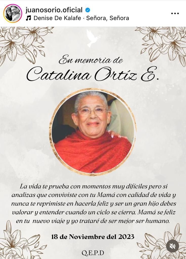El reconocido productor de telenovelas Juan Osorio, despidió a su madre Catalina Ortiz E. con un emotivo mensaje a través de sus redes sociales. El director del melodrama “La Herencia” dio a conocer la triste noticia del fallecimiento de su progenitora, ocurrido el pasado 18 de noviembre.