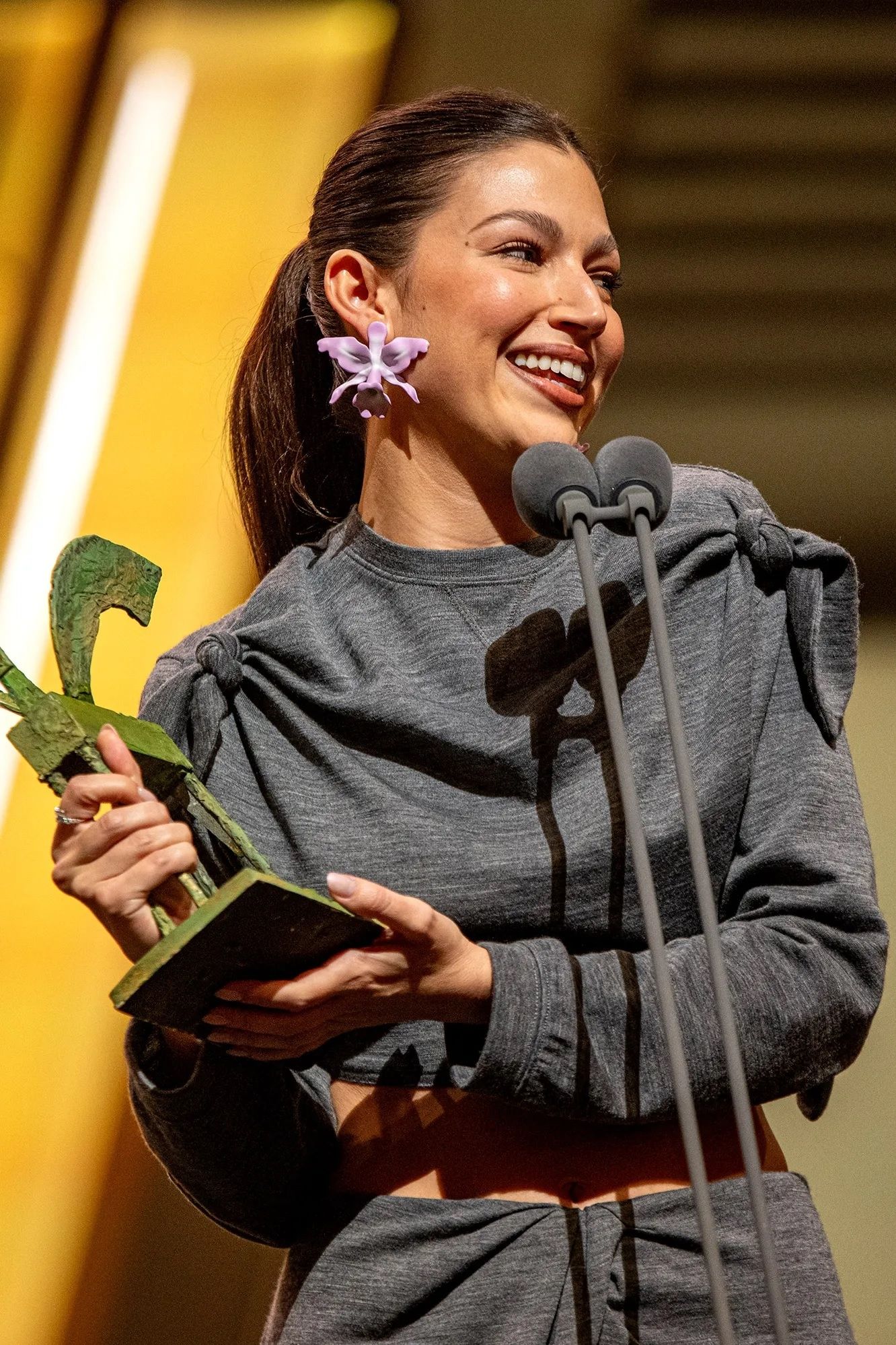 Vistiendo un total look de Loewe, la actriz recibió su estatuilla y tomó el micrófono dispuesta a hacer los clásicos agradecimientos que tienen lugar dentro de estas galas. Obviamente el reconocimiento es múltiples porque viene de brillar en la serie de Netflix, así que muchos esperaban sus palabras a la hora de subirse al escenario.