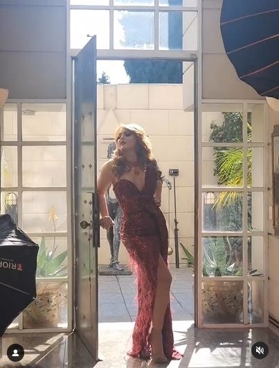 Pero la sorpresa no terminó ahí, ya que la actriz se mostró en una sesión de fotografía luciendo un elegante vestido largo con brillo y un escote corazón, acompañado de una pronunciada abertura en la pierna que la hacía más sexy aún.
