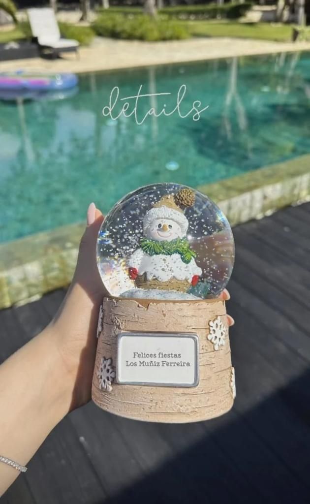 De esta manera, para dejar un recuerdo de lo que fue el 2023, una de las parejas del momento decidió entregarles a sus seres más queridos un delicado regalo. A través de sus historias de Instagram, donde acumula más de 2 millones de seguidores, Nadia Ferreira compartió una imagen del obsequio que le hicieron a su círculo más íntimo. Se trata de una bola de cristal navideña que adentro tiene un muñeco, y en la base incluye un cartel con el siguiente texto: “Felices fiestas, familia Muñiz Ferreira”.