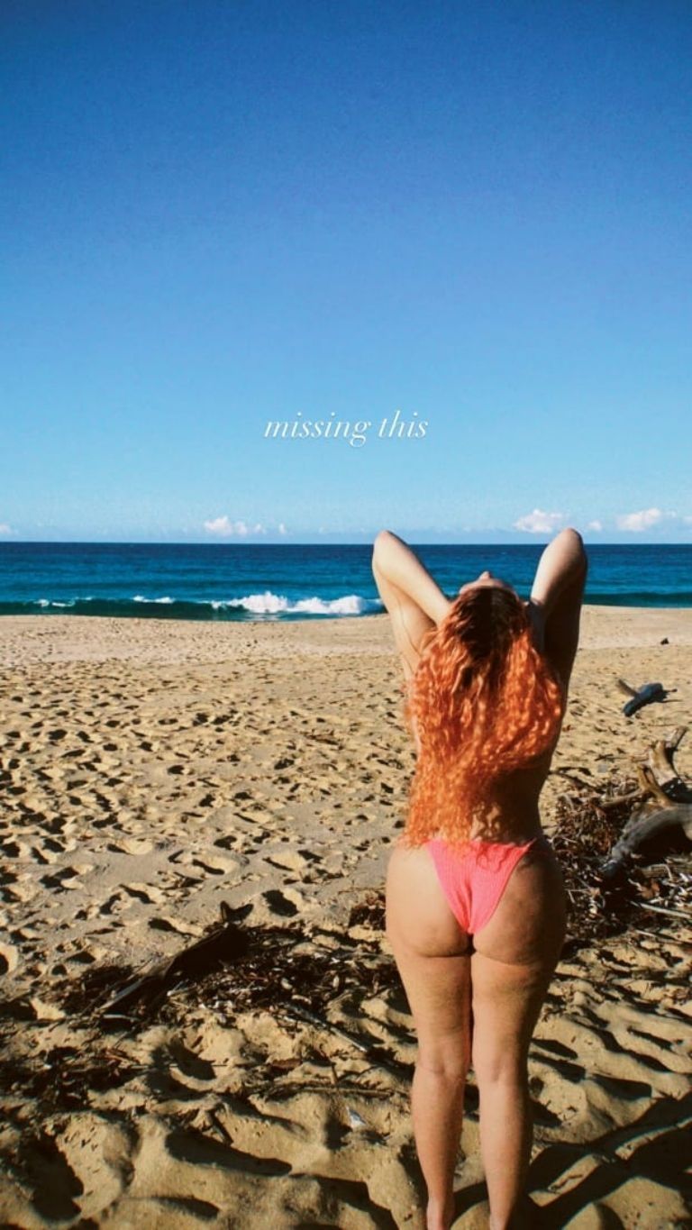 En otra de las publicaciones de la hija de Daddy Yankee se la ha visto luciendo su pelo totalmente rojo, muy similar al color que utiliza la estrella Karol G. Además, desafió los límites de restricción con una foto presumiendo sus curvas y luciendo una microbikini.