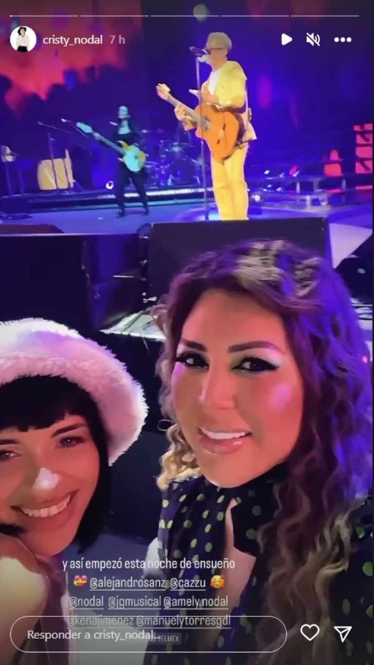 "Y así empezó esta noche de ensueño. Cazzu, Alejandro Sanz y Christian Nodal", escribió Cristina Nodal para acompañar dichos audiovisuales. "Gran orgullo por todas las bendiciones que Dios pone en tu camino. Mis dos grandes y máximos ídolos. Gracias, qué gran experiencia Christian Nodal y Alejandro Sanz", escribió Cristy Nodal.