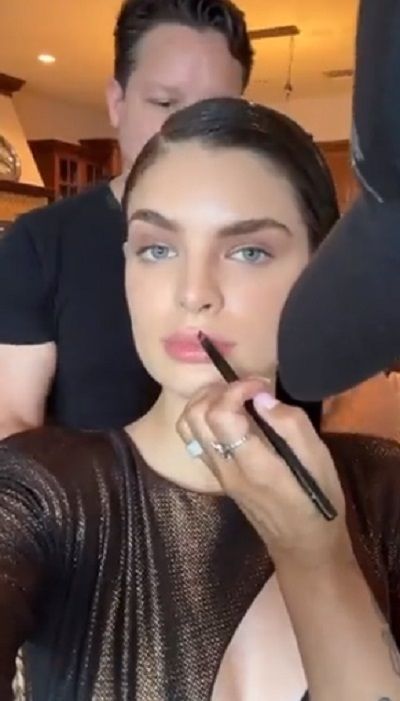 A pesar de estar en la dulce espera, la modelo sigue trabajando y así lo dejó ver a través de sus stories de Instagram, en donde dejó ver cómo la maquillan y arreglan para una sesión de fotos.