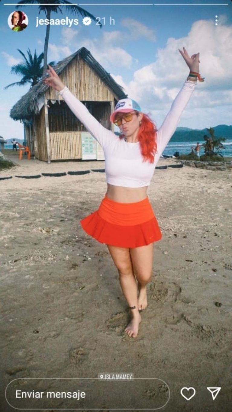 Jesaaelys sacudió las redes sociales al compartir recientemente en sus historias de Instagram unas imágenes donde se la puede ver posando en la playa con una sugestiva minifalda y los pies descalzos.