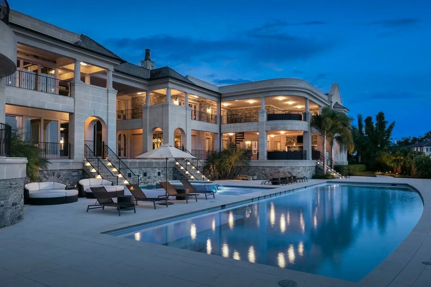 Entre otros detalles, la casona de Brady cuenta con 5 habitaciones, 11 baños, una sala de cine, una suite para invitados, una gran piscina, un spa climatizado, un garaje para 6 autos, un ascensor para personas y dos ascensores para barcos. Además, cuenta con un espacio al aire libre de 800 metros cuadrados.