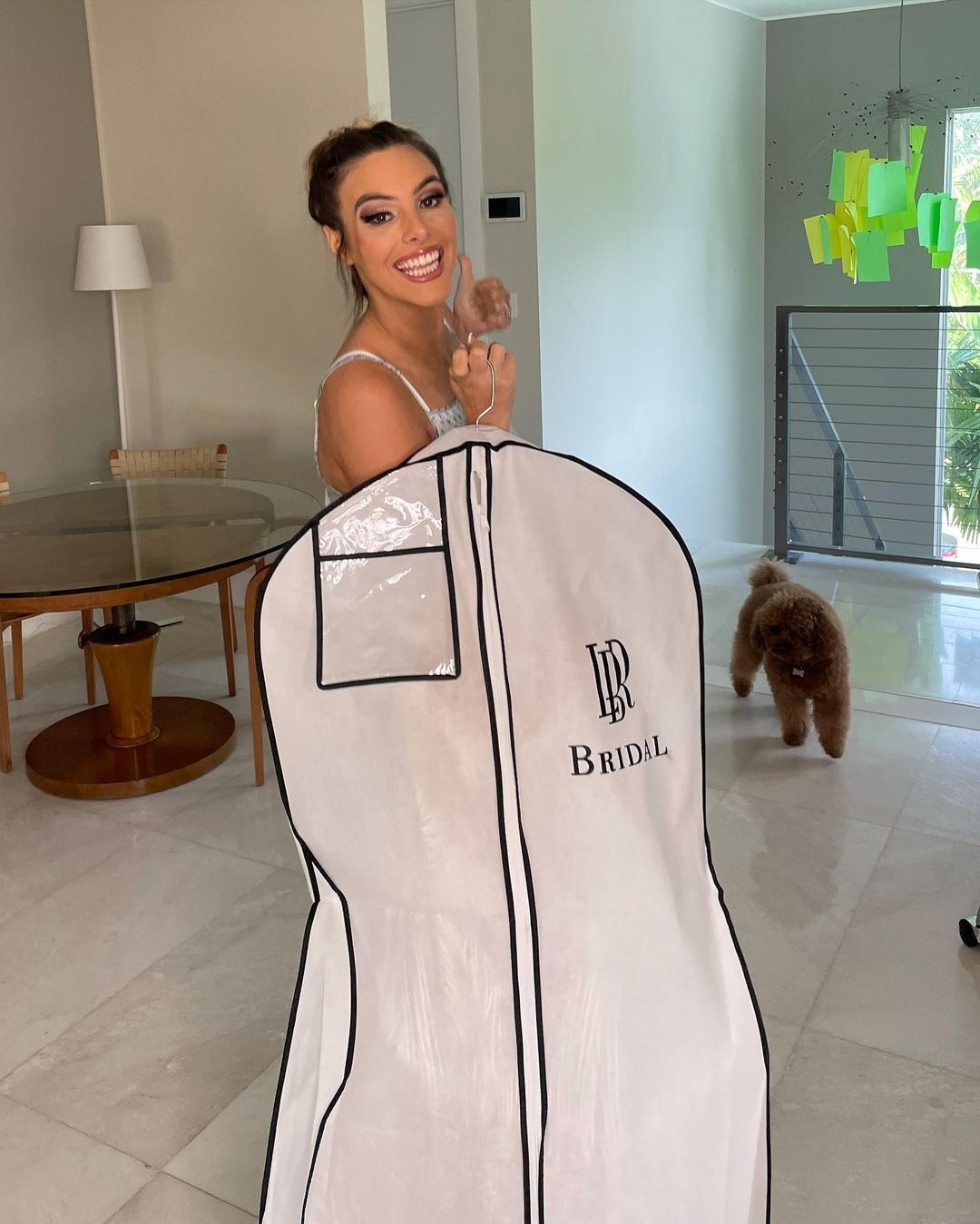 En otras instantáneas que subió, se la puede ver portando su vestido de novia (el cual está cubierto) y el número de posibles invitados que asistirán al gran día. Sin dudas, un anuncio con su propio y habitual sello.