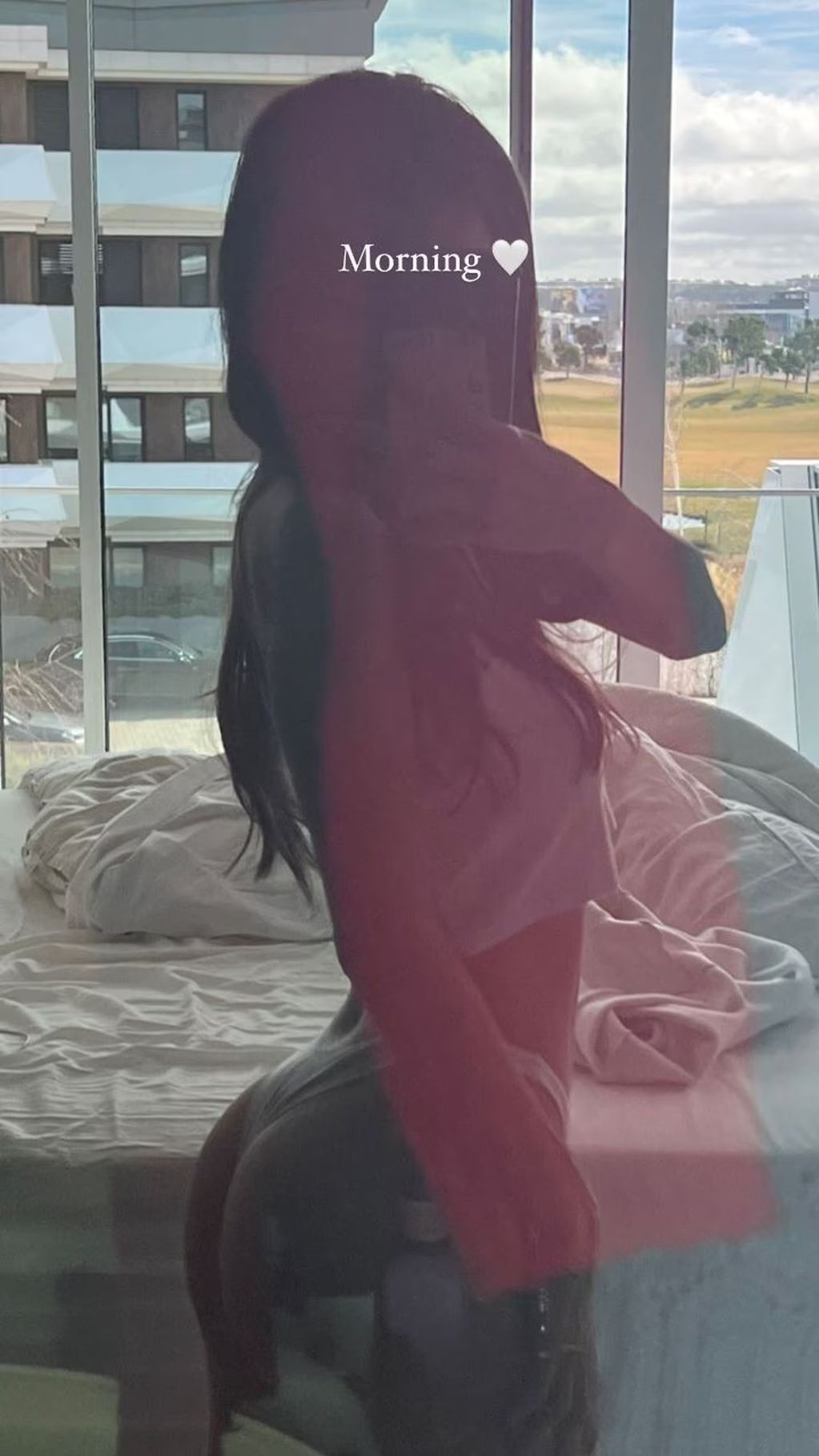 En esta oportunidad, la intérprete oriunda de Madrid volvió a cautivar a todos mostrando el reflejo de su cuerpo frente a la ventana de la habitación y se mostró con un crop top blanco que combinaba con la bombacha cavada que utilizó en la parte de abajo.