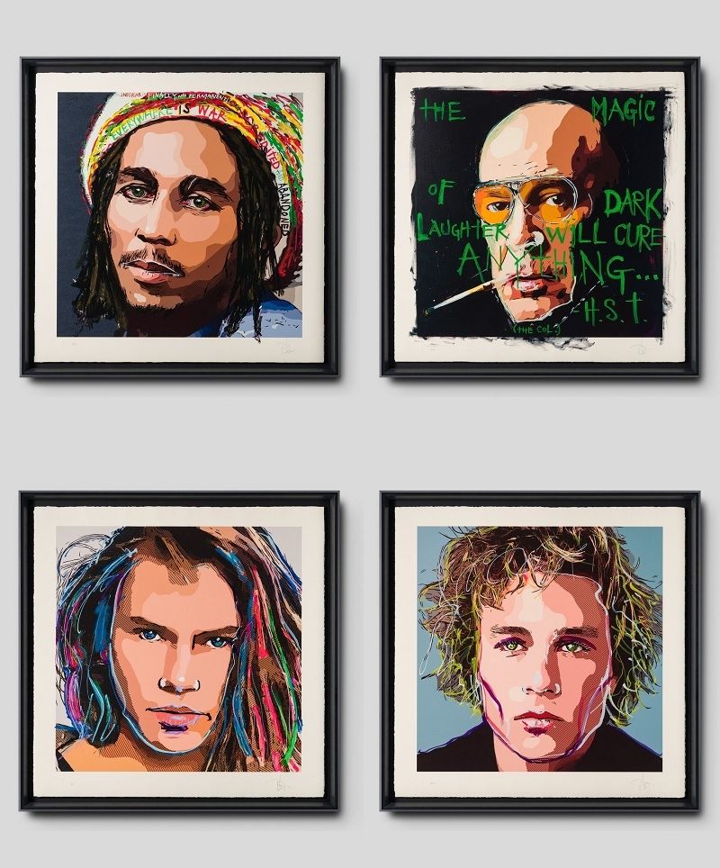 Titulada 'Friends & Heroes II', se trata de un carrusel de retratos compuesto por cuatro serigrafías hechas por Depp, pintando a figuras como Heath Ledger, Bob Marley, River Phoenix y Hunter S. Thompson. Estos cuadros cuentan con un valor de 21 mil dólares en la galería Castle Fine Art de Londres.
