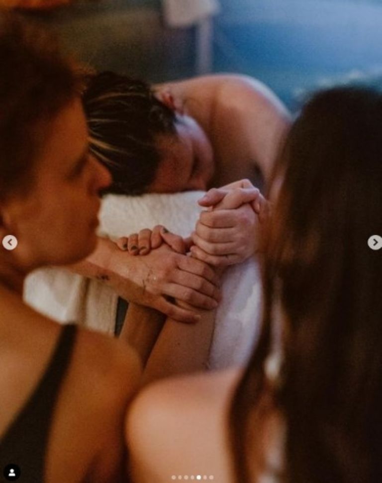 Mediante su Instagram personal, la flamante madre primeriza publicó varias fotografías en las que aparece posando en la bañera con su hija, mientras que, en otras, se observa dando a luz a la niña.
