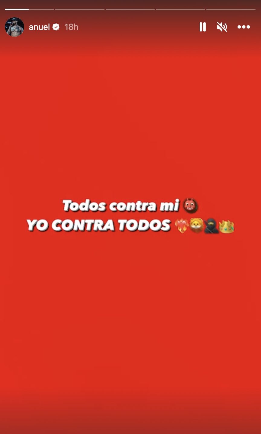 Si bien hasta el momento Anuel AA no se ha pronunciado sobre el comunicado que emitió el representante legal de Yailin, sí compartió un desafiante mensaje en sus historias de Instagram que decía: "Todos contra mí, yo contra todos", que podría ser en respuesta de las declaraciones del abogado, aunque el texto del reguetonero no va dirigido a nadie.