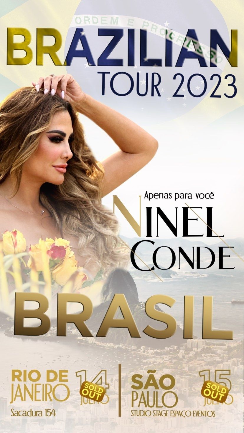 Además Ninel Conde publicó una foto en sus estados con una brillante noticia para sus fans de sudamérica. La artista azteca compartió una imagen de ella con el anuncio de las dos fechas agotadas que realizará en la ciudad de Brasil el próximo 14 y 15 de junio. Las ciudades elegidas para las funciones son Río de Janeiro y São Paulo respectivamente.