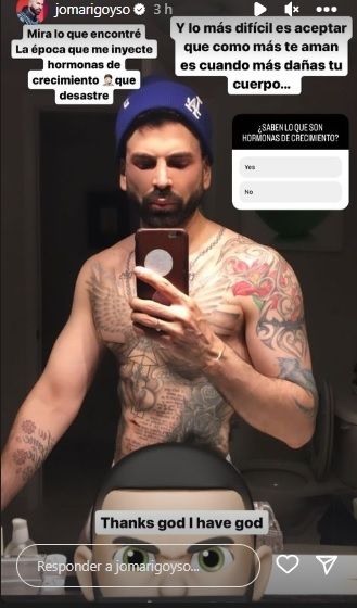 A través de sus redes sociales, Jomari compartió una fotografía que sorprendió a sus seguidores. "Mira lo que encontré. La época en que me inyecté hormonas de crecimiento, qué desastre", escribió el presentado en sus historias de Instagram.