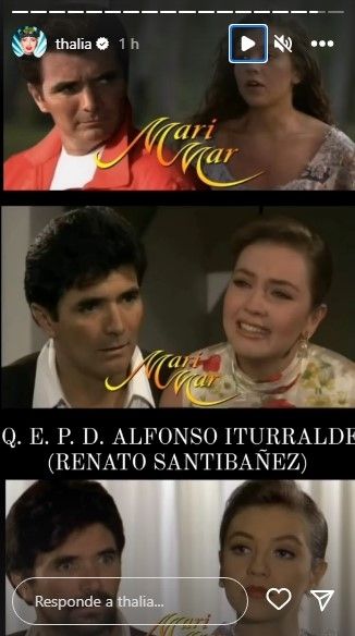 Para Thalía ha sido una situación muy lamentable. A través de su cuenta de Instagram compartió algunas imágenes muy emotivas de Alfonso Iturralde durante las grabaciones de "Marimar", para rendirle honores a su querido amigo. En una de las fotografías escribió "Vuela alto nuestro Renato Santibáñez", haciendo referencia al icónico villano de la telenovela.