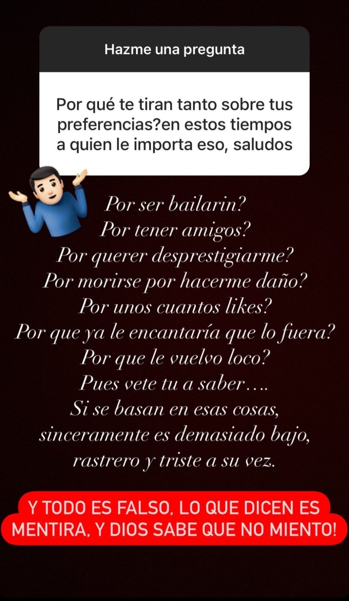 Sin ir más lejos, uno de sus dos millones de seguidores en Instagram, le cuestionó recientemente a Toni sobre sus preferencias. “¿Cuándo vas a salir del closet?”, escribió el fanático, a lo que el instructor de zumba respondió: "Nunca he estado dentro. Lo siento por ti si es porque me estás esperando ahí", despejando toda duda sobre sus gustos.