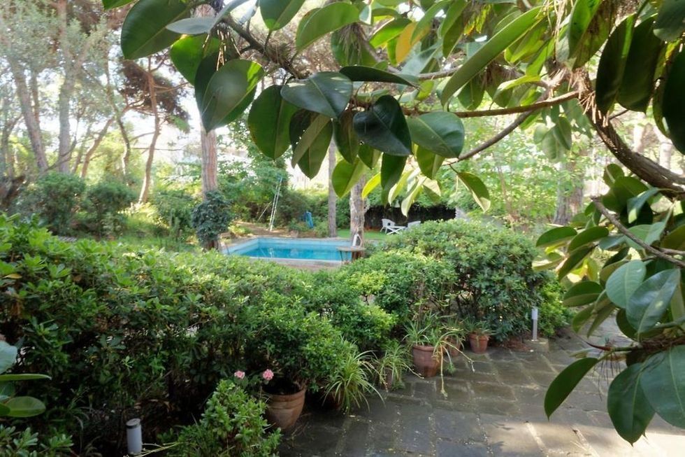 La finca Casa Barjau se encuentra a tan solo 100 metros de la playa de Castelldefels y tiene un precioso porche, con vistas al jardín con parrilla y piscina. Es un chalet con siete dormitorios y siete baños, dos salones con chimenea, cocina y un gran comedor.