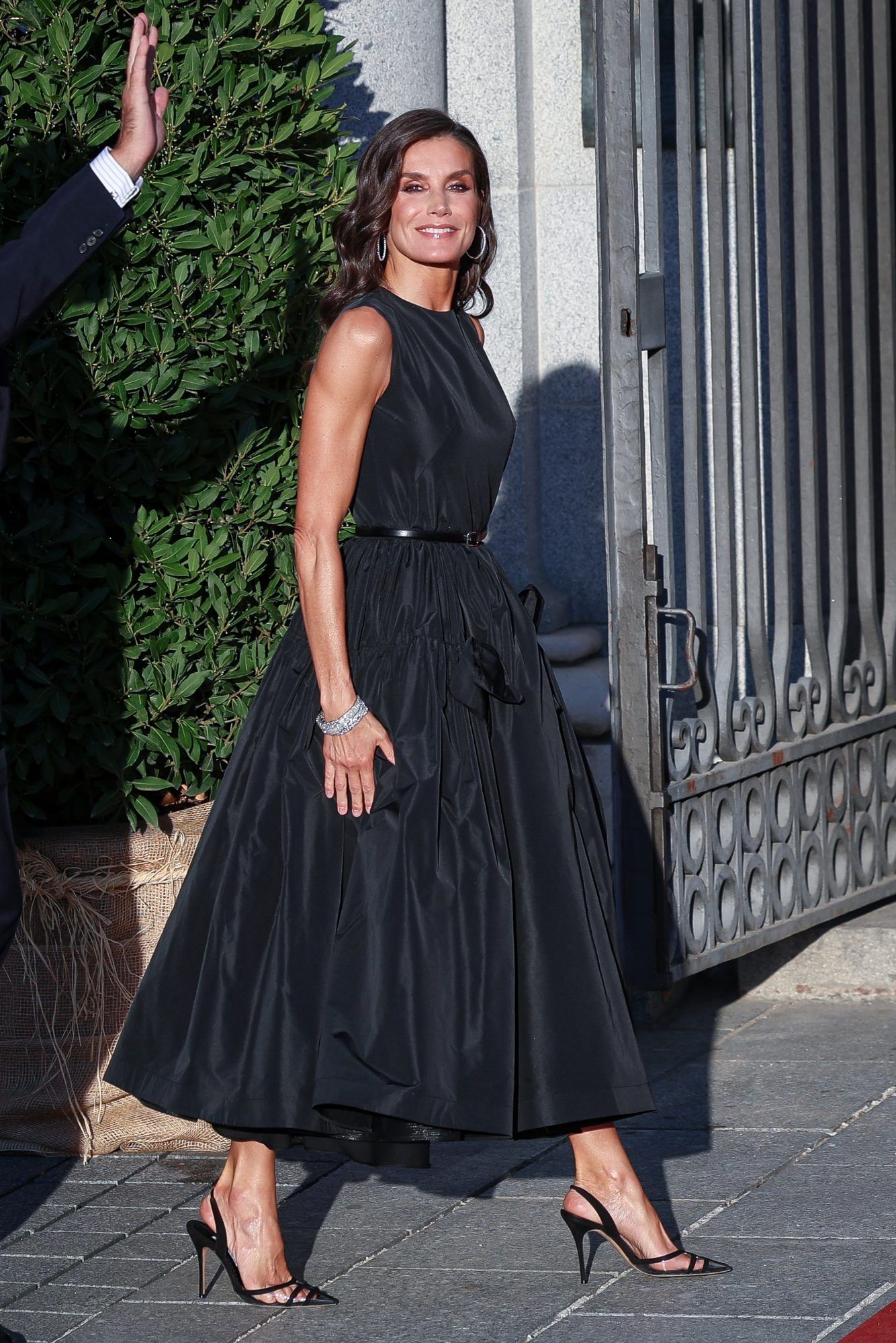 La reina Letizia lució por tercera vez este elegante vestido negro.