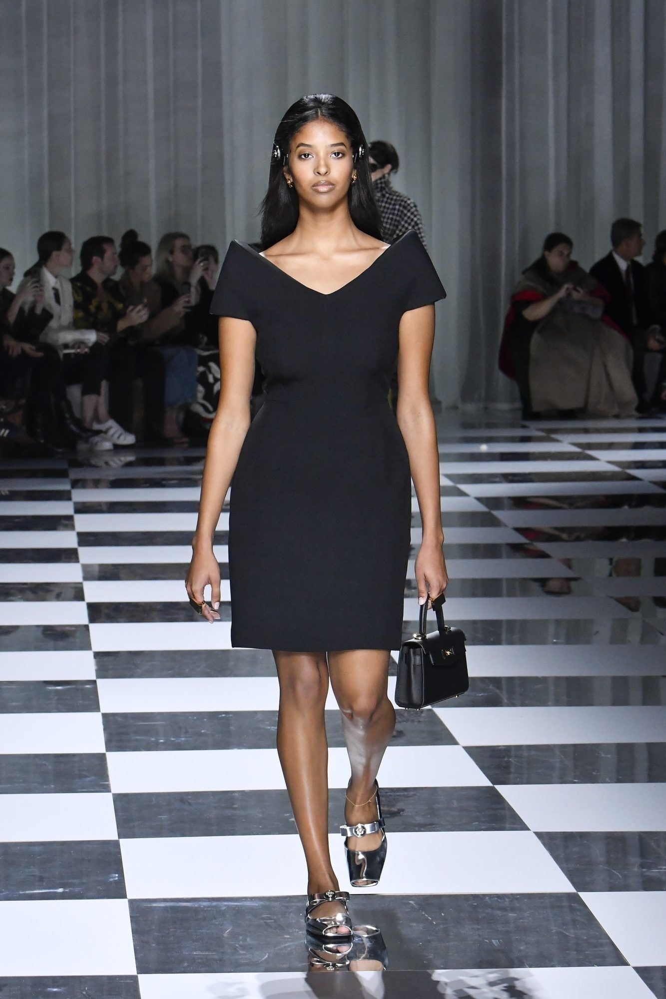 Vistiendo un minivestido negro con hombros estructurados, cintura ceñida y escote en pico, la joven de 20 años -nació el 19 de enero de 2003- se lució como todo una modelo profesional mientras recorría la pasarela a cuadros.