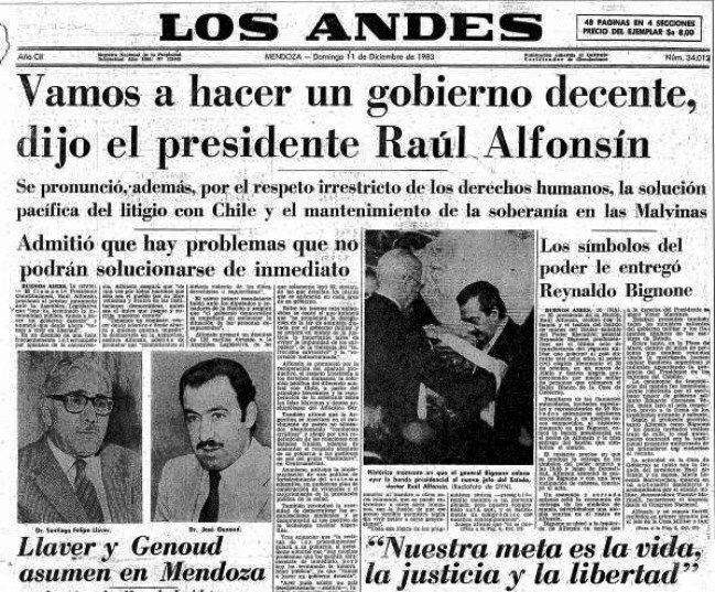 - Mire, yo recuerdo perfectamente que cuando di a conocer mi gabinete, en Mendoza hubo una serie de reuniones en el seno del Partido Justicialista. Y me acuerdo que mientras nosotros estábamos dando a la población estas informaciones, en el PJ se discutía "aceptar la autocrítica y proceder a la reorganización del partido mediante un proceso sereno y sin agravios". Fijese en los diarios: discutían lo siguiente: "Lorenzo Miguel optó por dar un prudente paso al costado en lo referente a la conducción política del justicialismo y dejar esa tarea bajo la responsabilidad de Carlos Juárez, medida que respetamos". Y lo más increíble: "No prosperó la iniciativa de Carlos Menem, en el sentido de dejar la conducción partidaria en manos de María Estela Martínez de Perón" (risas). La noche negra de la dictadura había empezado con ella y todavía algunos querían que fuese la referente del principal partido de la oposición apenas inaugurada la democracia. Recuerdo eso y recuerdo haberle dicho al gabinete: "estamos peor de lo peor que podemos pensar". A todos se les borraron las sonrisas.