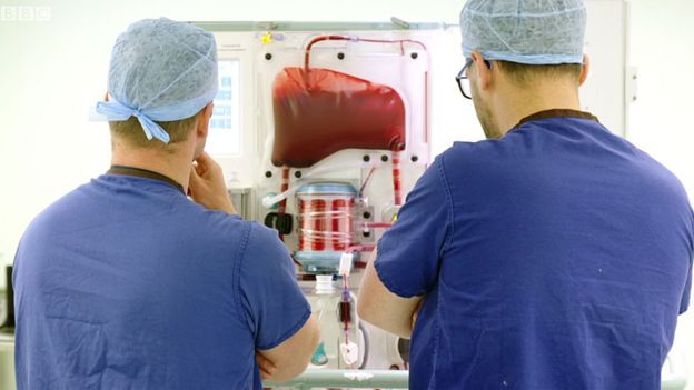El hígado que fue declarado no apto para trasplantes será conectado a esta máquina para ver si se puede recuperar.