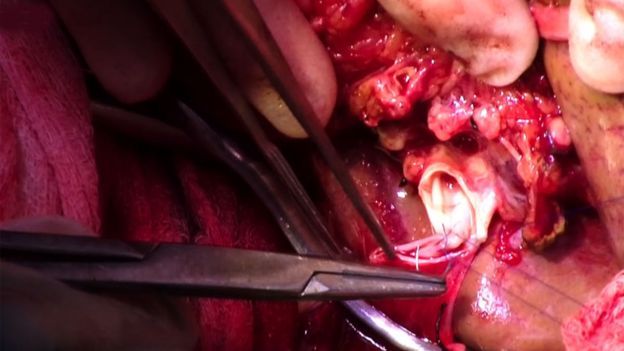 El trabajo que hace el cirujano es asombroso: cose cada vaso sanguíneo nuevamente, en este caso la vena porta.
