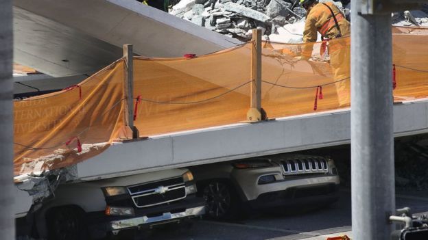 El alcalde de condado Miami-Dade, Carlos Giménez, dijo que los trabajadores estaban realizando una "prueba de estrés" en el puente el jueves, y el Departamento de Bomberos de Miami-Dade confirmó que dos trabajadores estaban en el puente cuando colapsó.