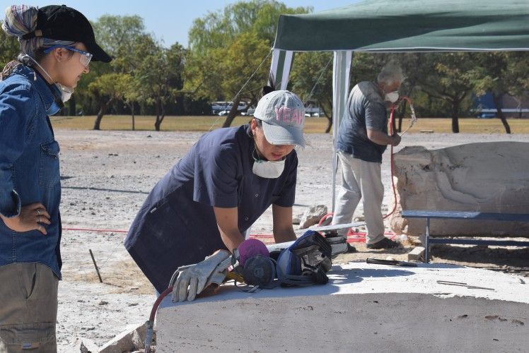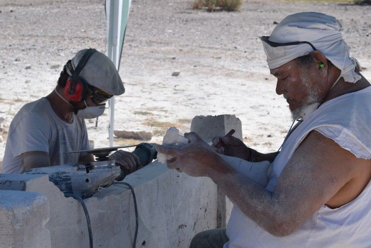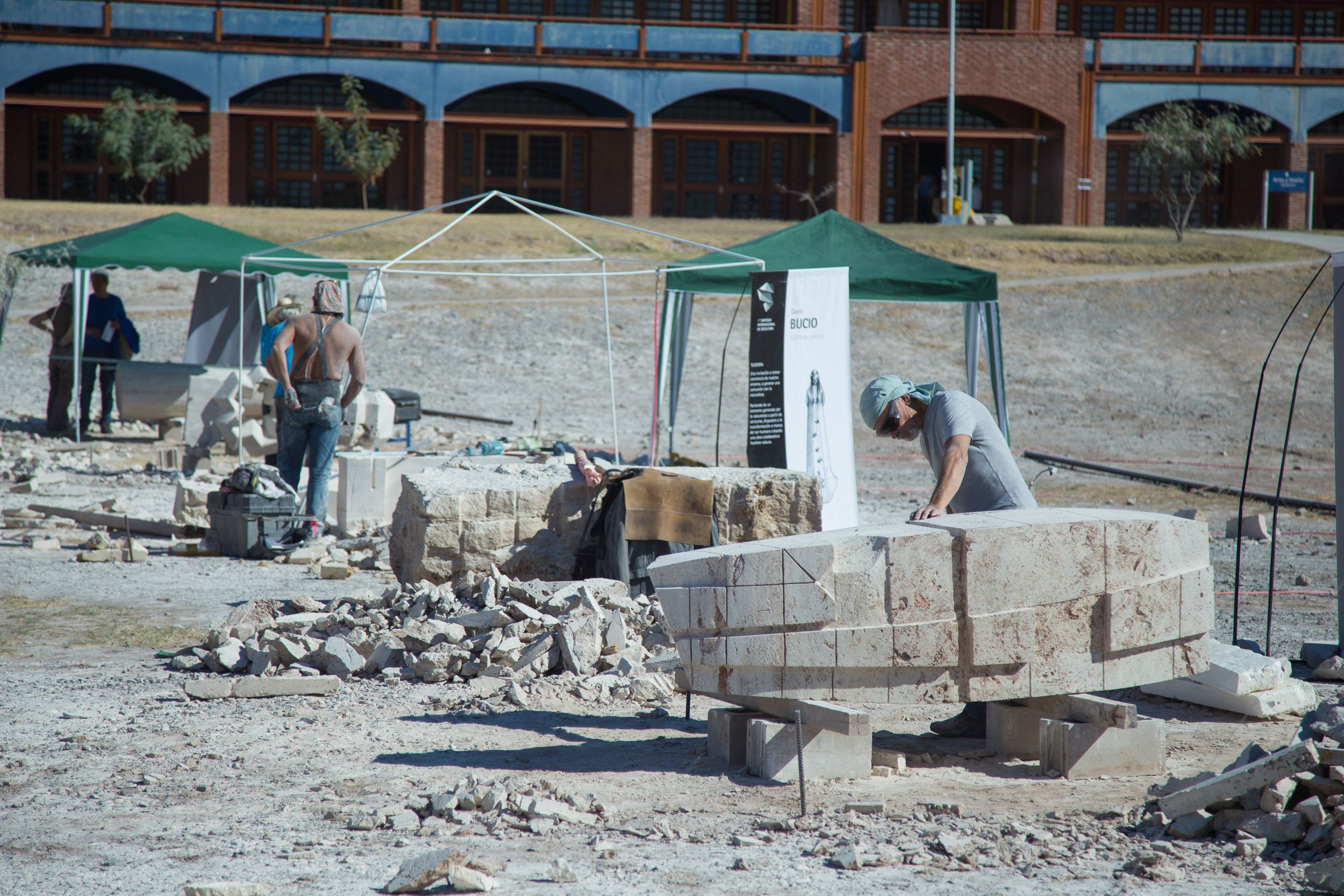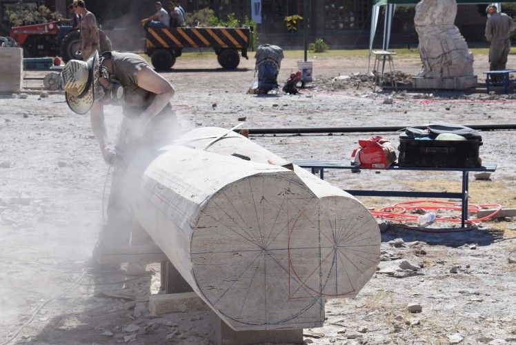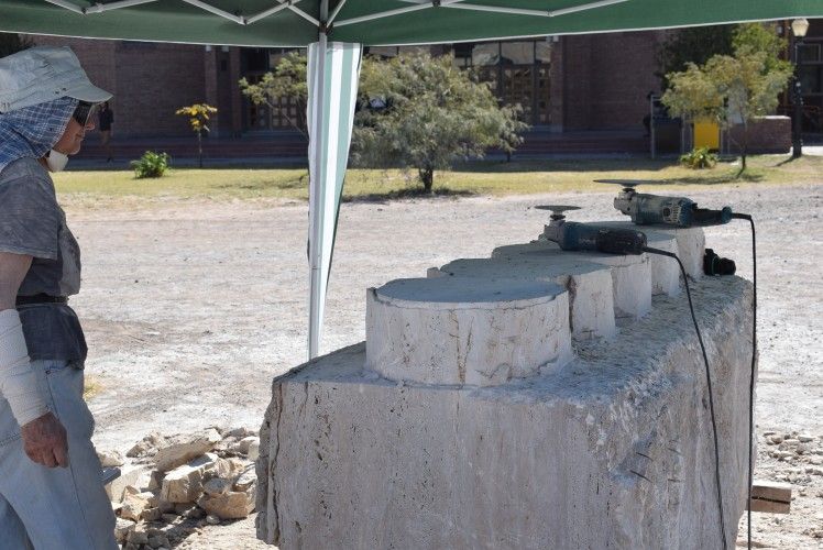 Arturo Lomba (Buenos Aires), David Bucio (México), Daniel Ciancio (Mendoza), Milton Estrella Gavidia (Ecuador), Aquiles Jiménez (Costa Rica), Carlos Monge Sánchez (México), Paty Sonville(Bélgica) , José Tachuela Delía (Entre Ríos), Néstor Vildoza (Catamarca) y Tanya Preminger (Israel) trabajan desde el lunes moldeando piezas de mármol travertino en el predio central de la FAD.