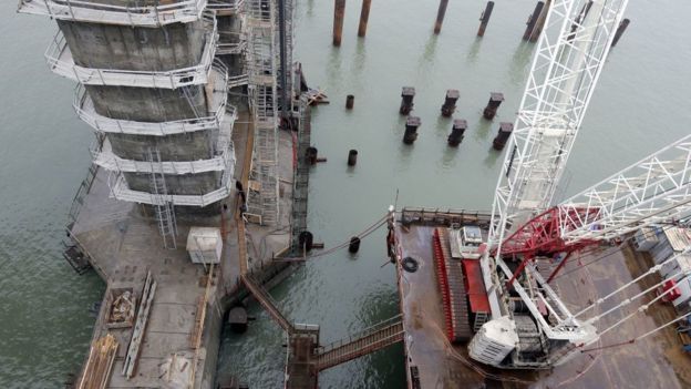 "La idea se había debatido durante los últimos 20 años, pero solo ahora, después de la anexión rusa de Crimea, hay suficiente voluntad política para sacarla adelante", dijo el periodista del Servicio Ruso de la BBC, Oleg Boldyrev, quien estuvo en Crimea viendo el avance de la construcción.