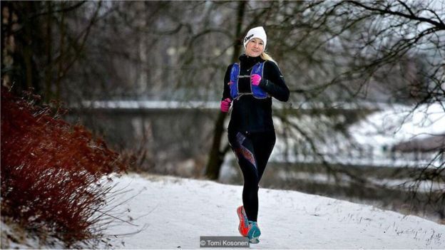 El sisu le permite a las personas ir más allá de lo que creían posible, pero también puede hacer que te quemes, dice Emilia Lahti, que aparece entrenando en esta foto.