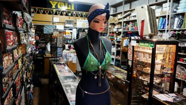 "Se quedan dos horas escogiendo un botón", se queja. "Y como un botón hoy día vale 20 pesos (menos de US$1), el negocio es cada vez menos rentable porque los clientes son todos viejos o modistas".