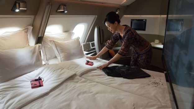 En los aviones Airbus A380 de Singapore Airlines se puede pagar por una suite con cama doble. Según la compañía, invirtieron US$850 millones en la instalación de estas suites y lujos en su flota Airbus.