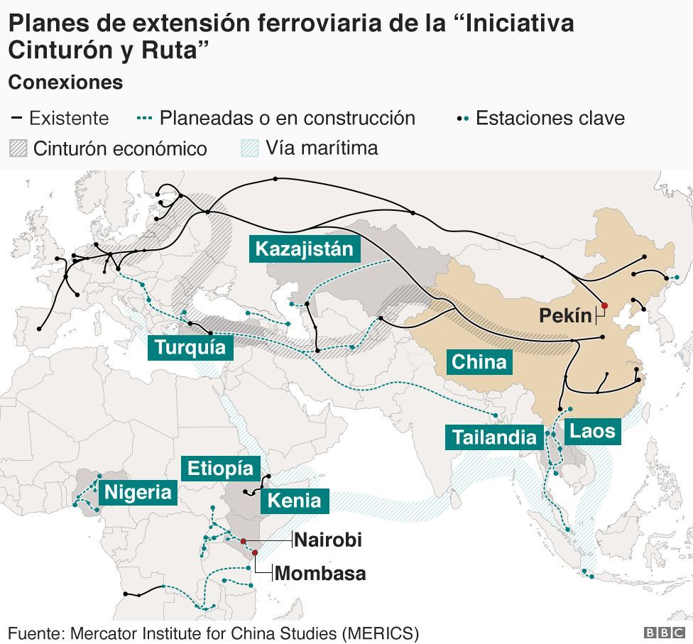 El ambicioso plan del presidente Xi Jinping, lanzado en 2013, tiene como objetivo conectar a dos tercios de la población mundial y 70 países a través de una red de enlaces terrestres (el "cinturón") y rutas marítimas (la "ruta").