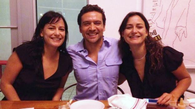 Natalia (a la izquierda) con su hermana gemela, Carolina y un amigo.