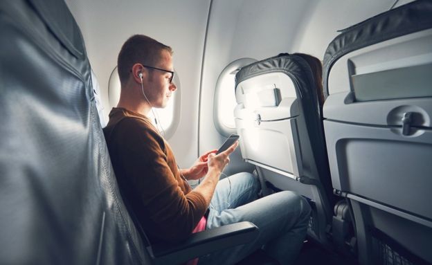 La mayoría de las personas que viajan en avión tienen que poner sus dispositivos en "modo avión" durante el vuelo.