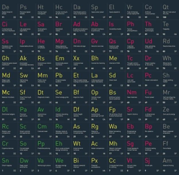 Académicos del Imperial College London crearon un gráfico a manera de tabla periódica en la que incluyeron 100 tecnologías disruptivas.
