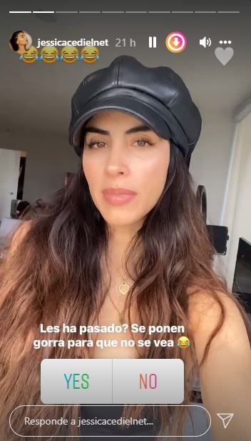 Por otra parte, Jessica compartió con sus followers como solucionó un problema con su cabello ante una salida con su hermana. “Familia imagínense que ya esta lista para salir con mi hermana. Me dio una pena tengo el pelo tan cochino ¿No les ha pasado niñas? Tenía esto así (pelo) hecho un grasero puedo poner un huevo y se les frita ahí mismo y tuve que ponerme gorro” señaló la morocha en sus historias de Instagram.