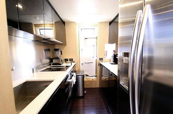 Asimismo, está equipado con una amplia cocina con todos los electrodomésticos de última generación, y sus ventanas son espejadas para poder mantener la privacidad dentro de la embarcación.