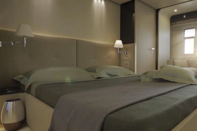 Dentro del yate, hay una suite principal con una cama tamaño king y unas pequeñas ventanas que permiten el ingreso de los rayos del sol, además de todas las comodidades propias de una estrella.