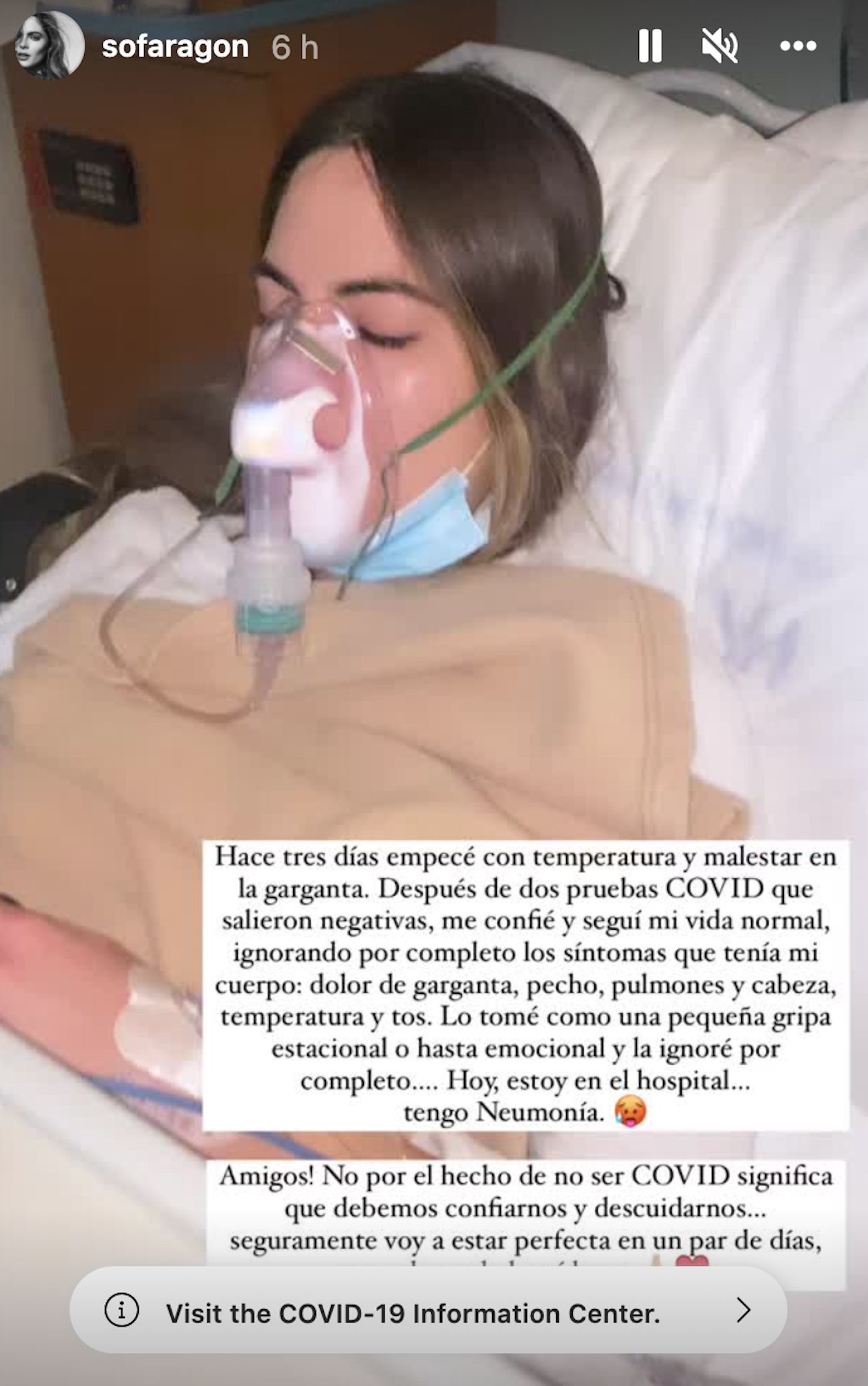 Se dio a conocer que la modelo, actriz y conductora Sofía Aragón, de 27 años, hace pocas horas, durante la madrugada preocupó a todos sus fans, luego de confirmarse que tuvo que ser hospitalizada de emergencia debido a un cuadro de neumonía.